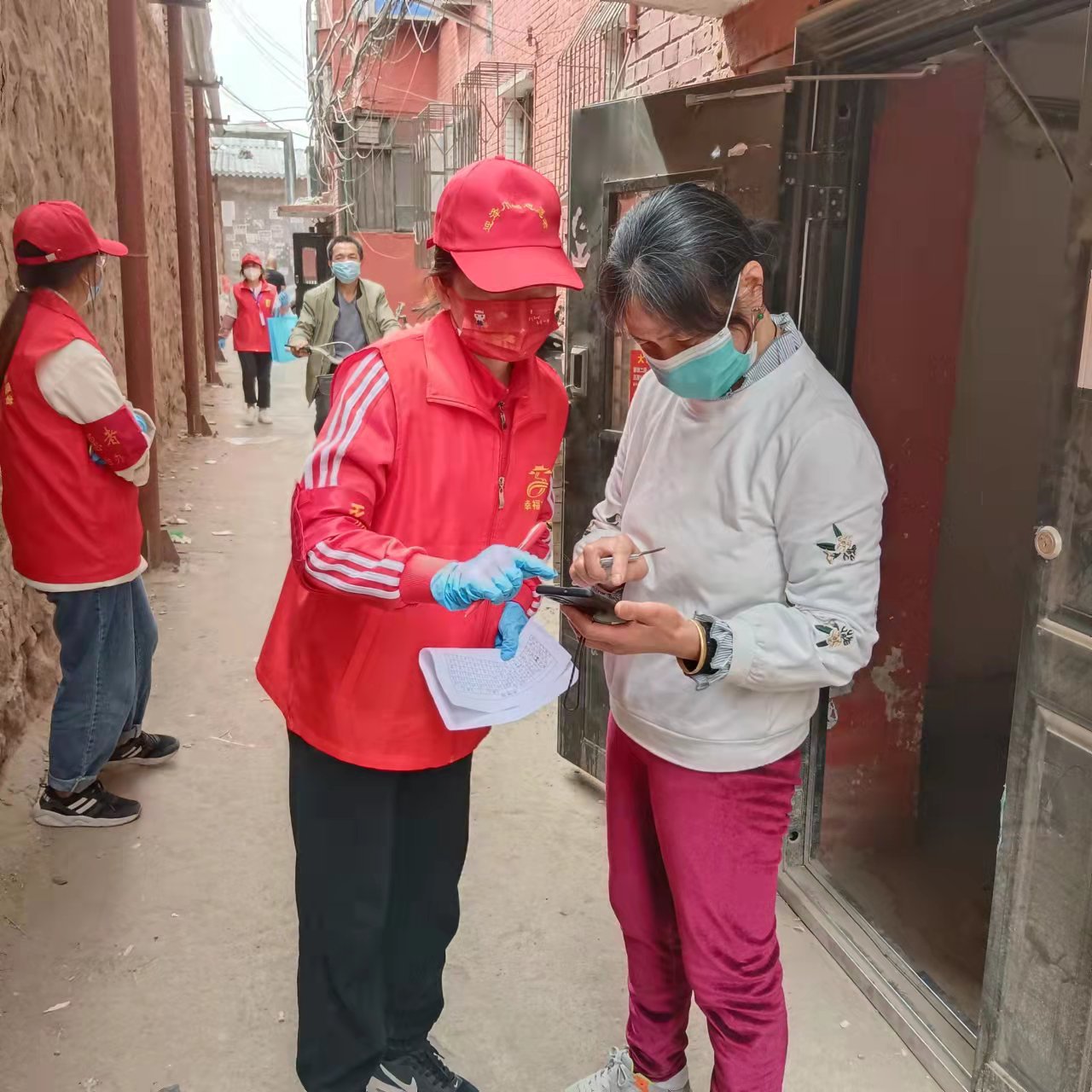 采集員馬慧霞在五龍口社區挨家挨戶(hù)進(jìn)行人員信息登記。
